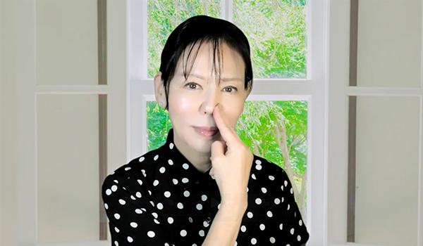 5)吸いながらゆっくりと正面へ戻り、一息置いてから反対側も行う