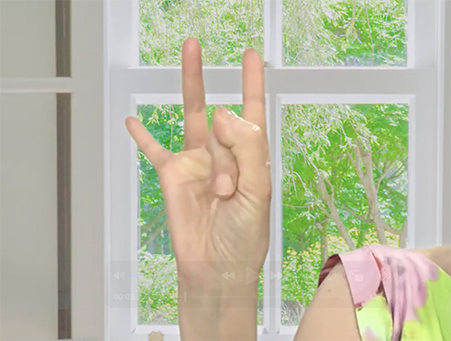 2)両方の腕を肩のラインで伸ばして、肘を90度に曲げる。手のひらは内側でも外側でもOK